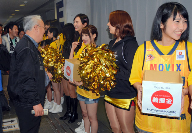 HKT48 Menjadi Tamu Khusus Dari BJ-league (BASKETBALL JAPAN LEAGUE) di ALSOK Gunma Arena Pada 17 April 2016, Dan Mereka pun Juga Mengumpulkan Dana Bantuan Gempa Kumamoto Ketika Menjadi Tamu Khusus disana.